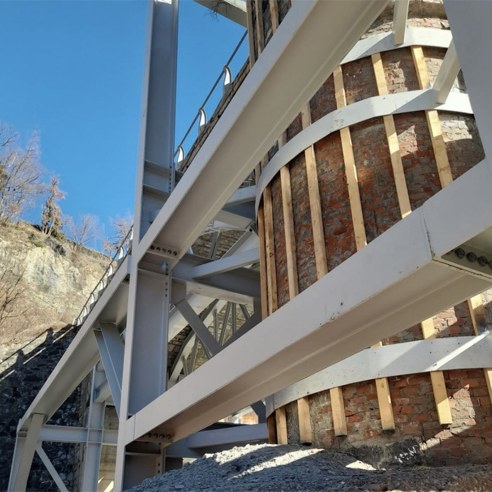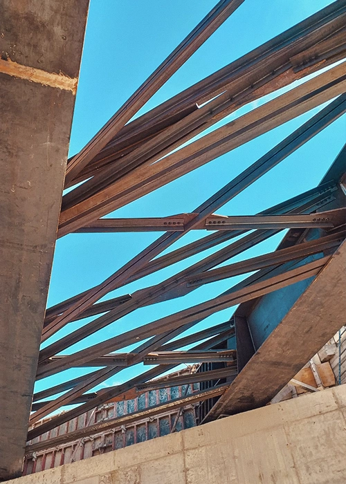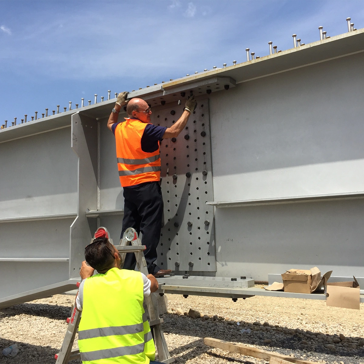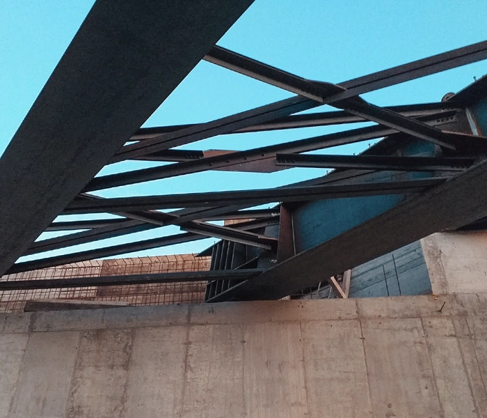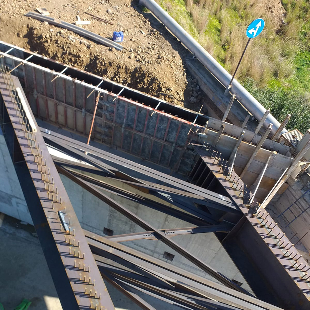 Una volta conclusa la realizzazione presso Stabilimento di produzione, svincolo e successiva verniciatura, i conci delle travi principali sono stati opportunamente saldati in cantiere e successivamente collegati alle travi secondarie mediante giunti bullonati.