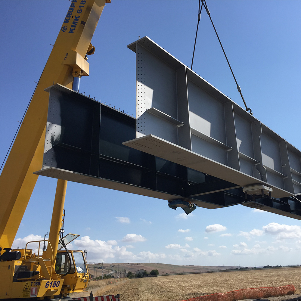 Il cavalcaferrovia realizzato è costituito da due travi parallele realizzate presso Stabilimento di produzione e composte da piattabande superiori, inferiori ed anima centrale.